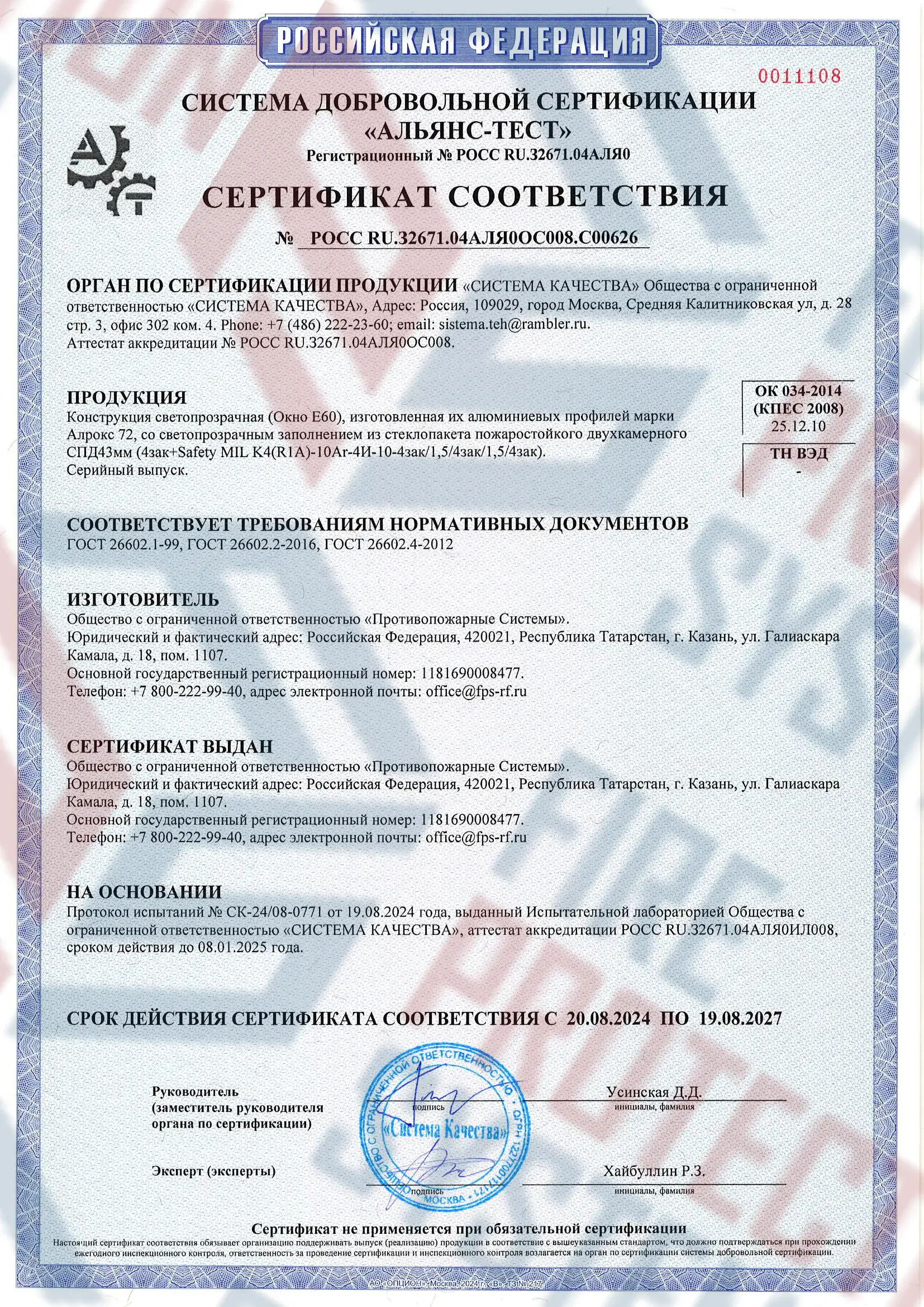 Полная сертификация – соответствие ГОСТ Р 53308-2009;